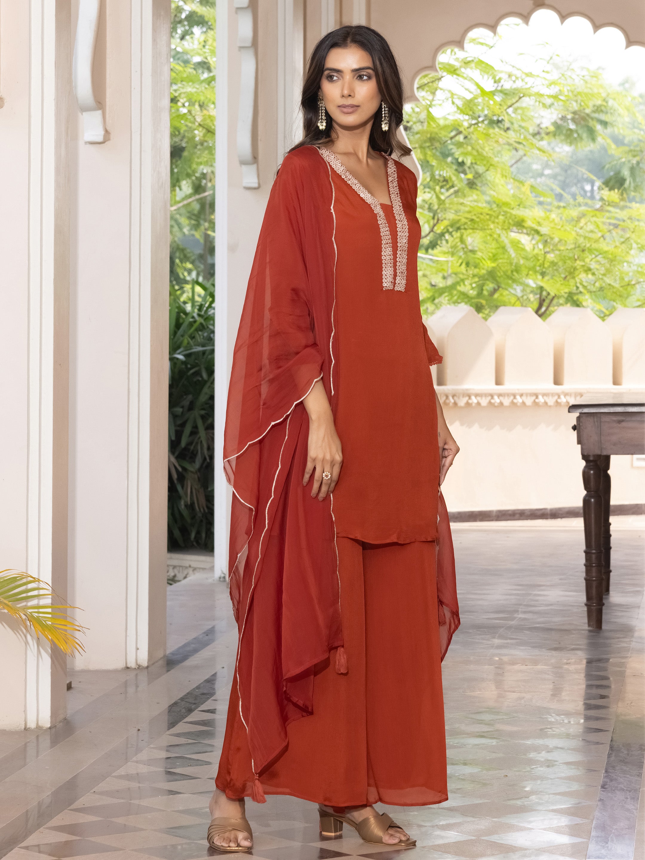Meera Viscose Chanderi Embroidered Suit Set